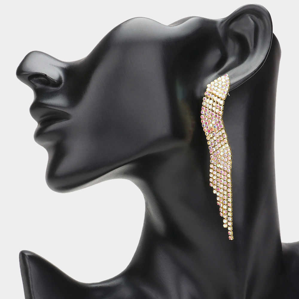 Rhinestone Paved Fringe Dropdown Evening Earrings