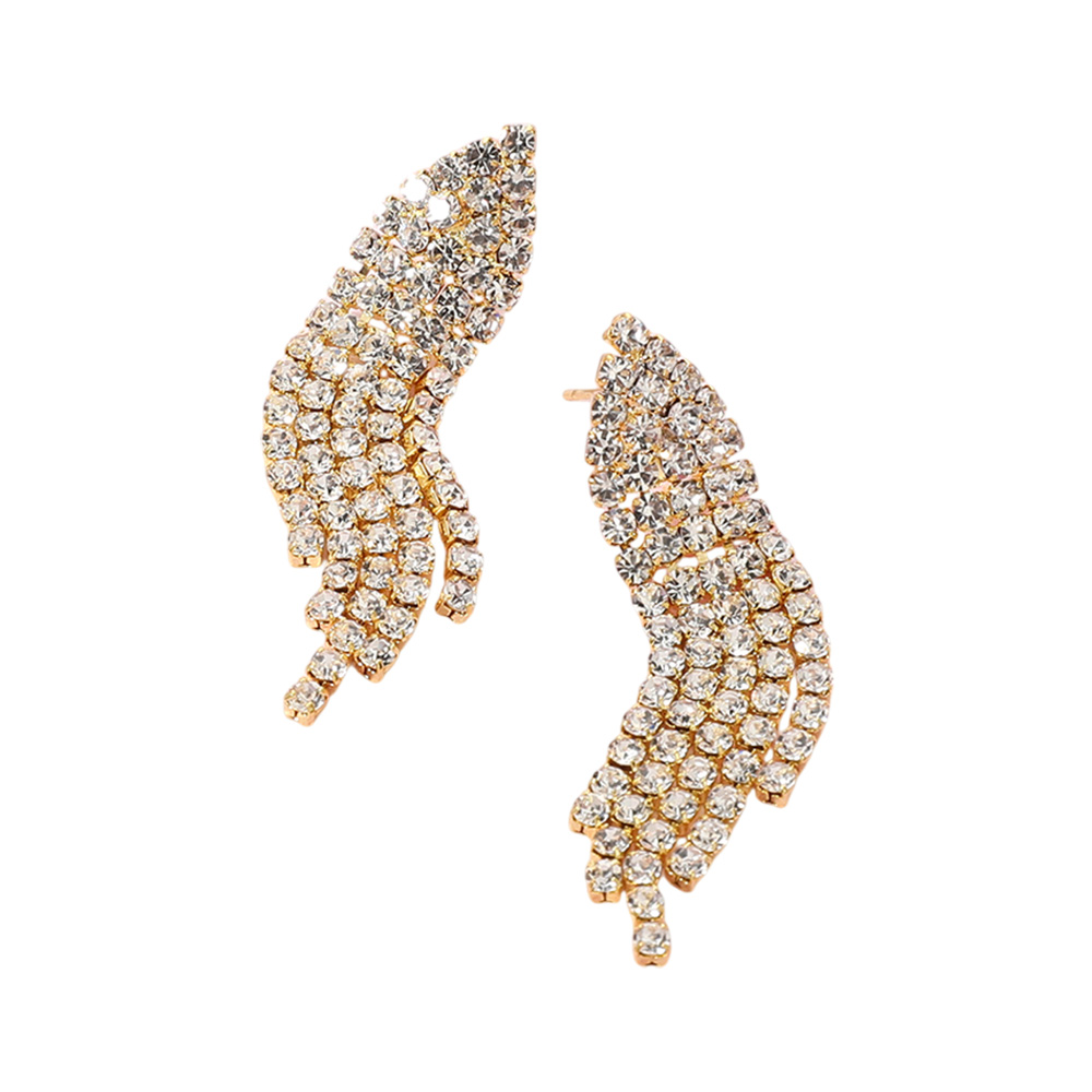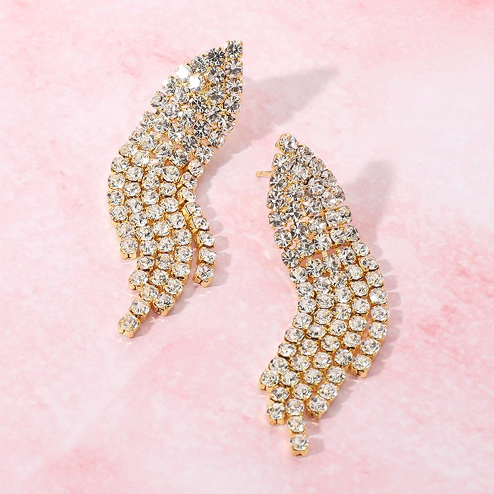 Teardrop Marquise Stone Cluster Embellished Rhinestone Fringe Evening Earrings