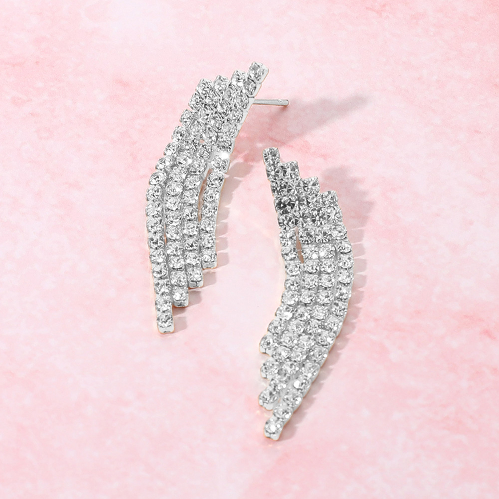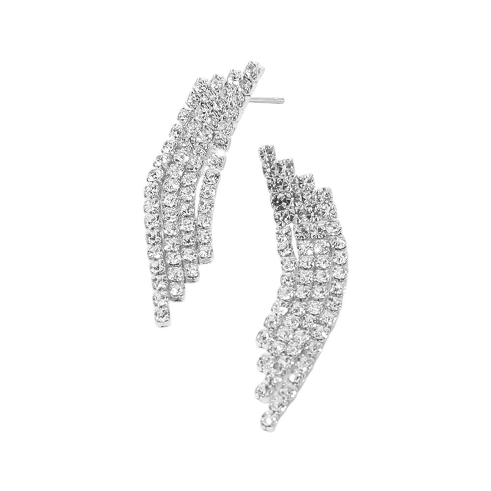 Emerald Cut Stone Accented Rhinestone Fringe Dangle Evening Earrings