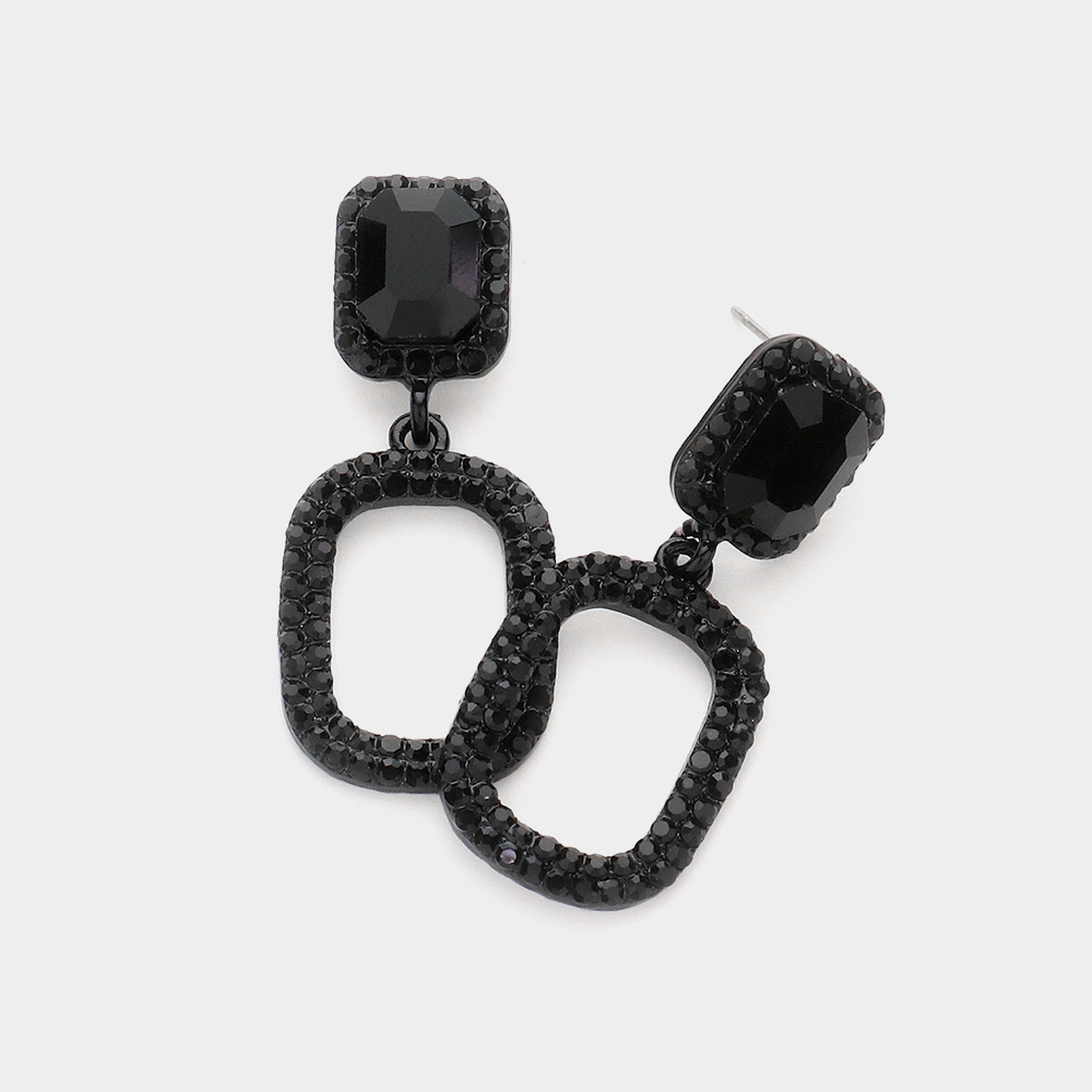 Rhinestone Paved Open Rectangle Dangle Evening Earrings