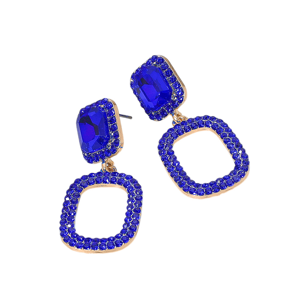 Rhinestone Paved Open Rectangle Dangle Evening Earrings
