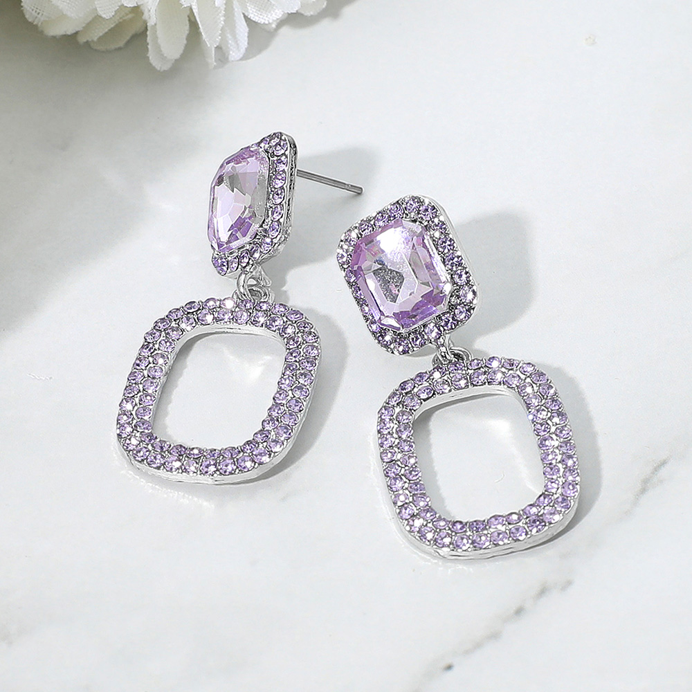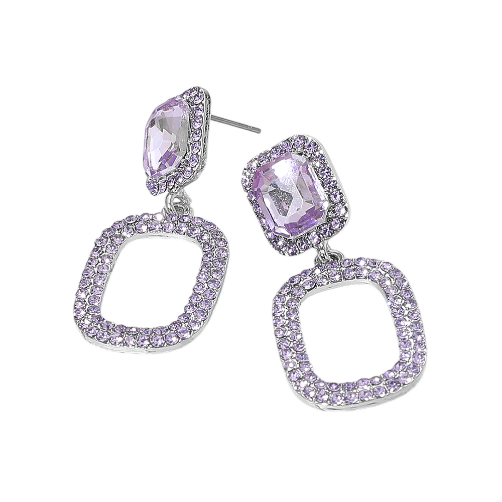 • Add a bold statement to your jewelry collection with these dazzling rectangular drop earrings. Featuring a sparkling gem top and shimmering accents on the open geometric frame, they combine glamour and elegance, perfect for elevating evening wear or enhancing everyday chic style.