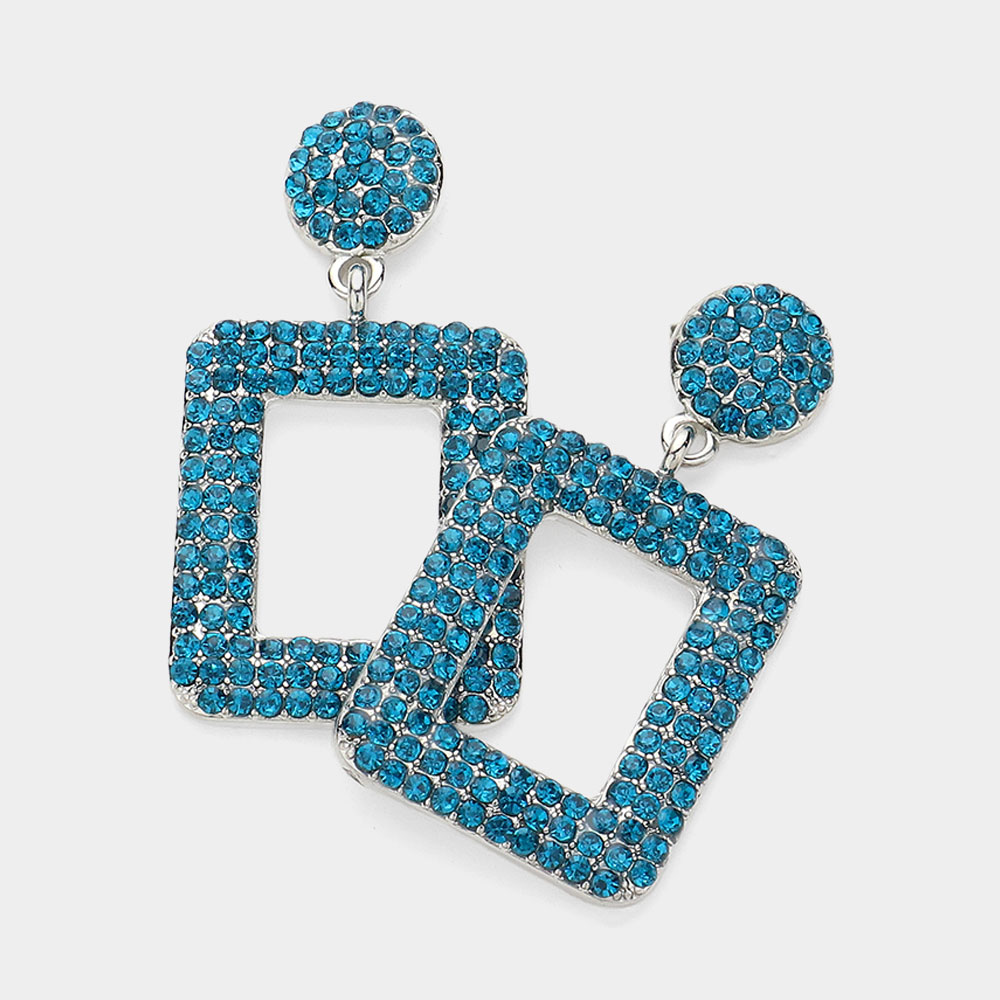 Rhinestone Paved Open Square Dangle Evening Earrings