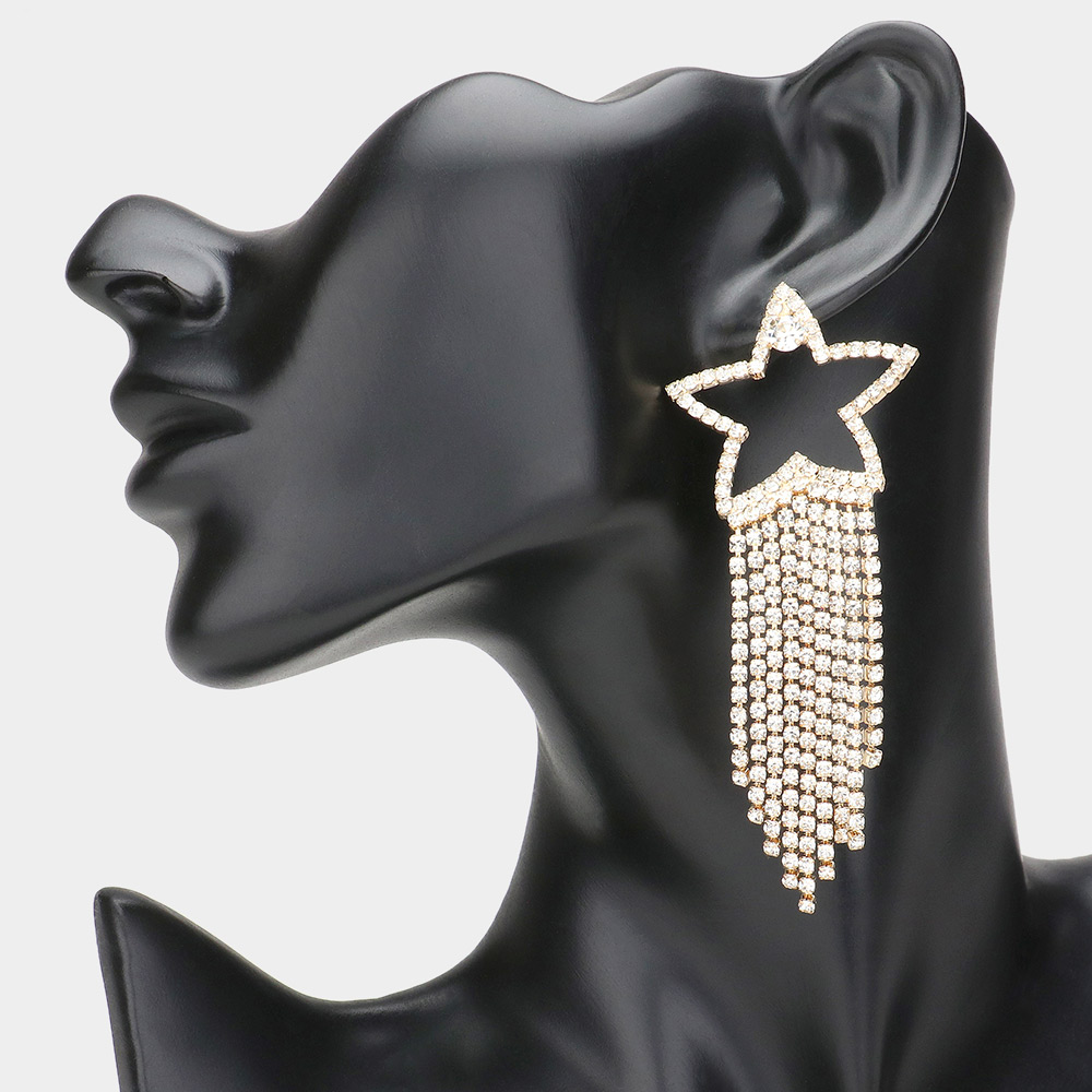 Rhinestone Paved Star Pointed Fringe Evening Earrings