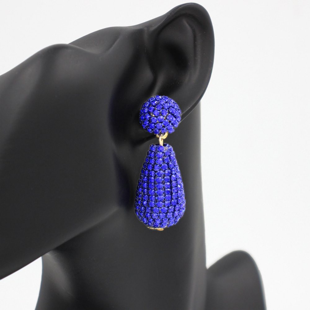 • Elegant teardrop crystal ball earrings with dazzling pave detailing. Designed to catch the light, these statement drop earrings are perfect for evening wear, weddings, or parties, adding sophistication and sparkle to any outfit with their bold and glamorous design.