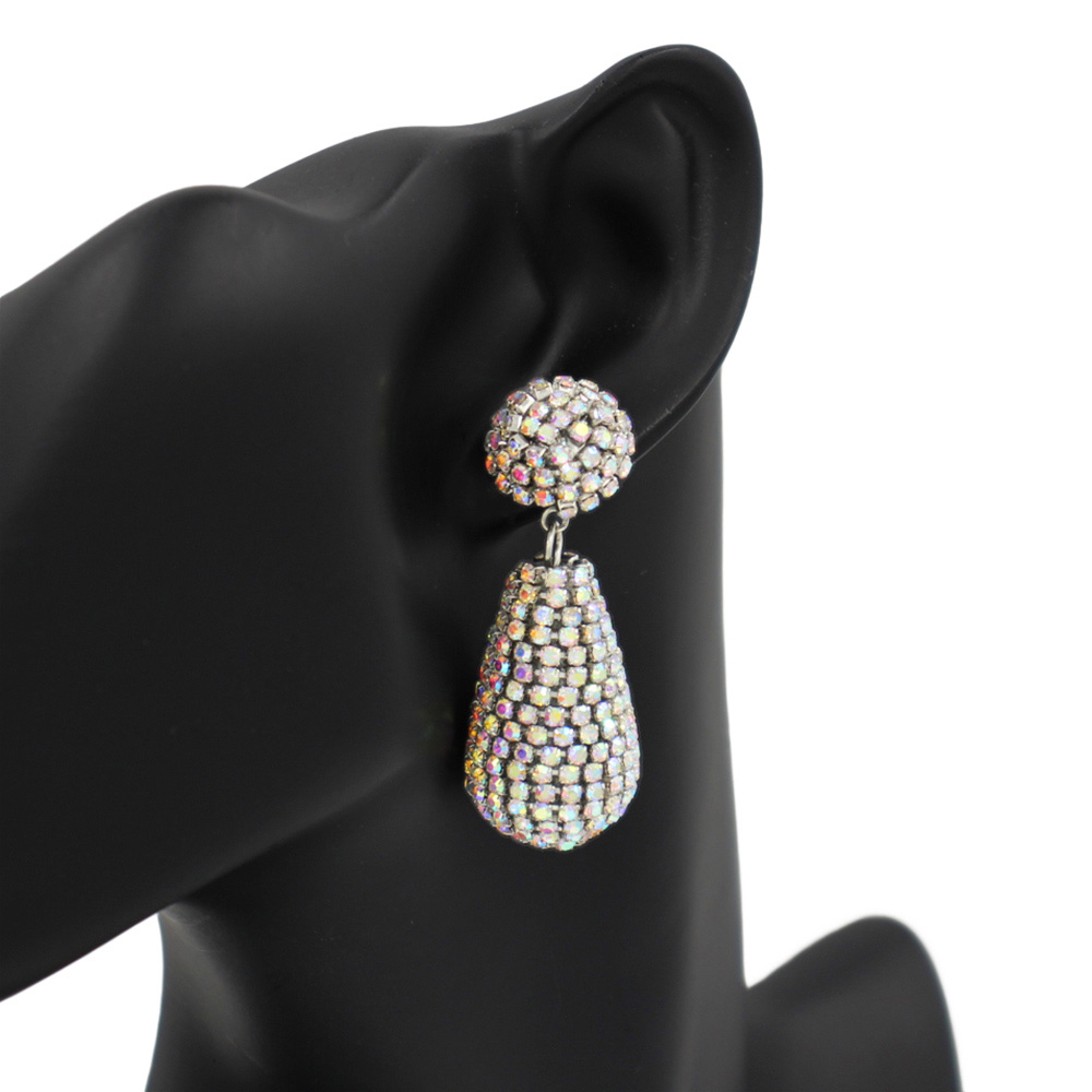 Details • Size : 0.75" X 2.1" • Post Back • Elegant teardrop crystal ball earrings with dazzling pave detailing. Designed to catch the light, these statement drop earrings are perfect for evening wear, weddings, or parties, adding sophistication and sparkle to any outfit with their bold and glamorous design. • Lead and Nickel Compliant
