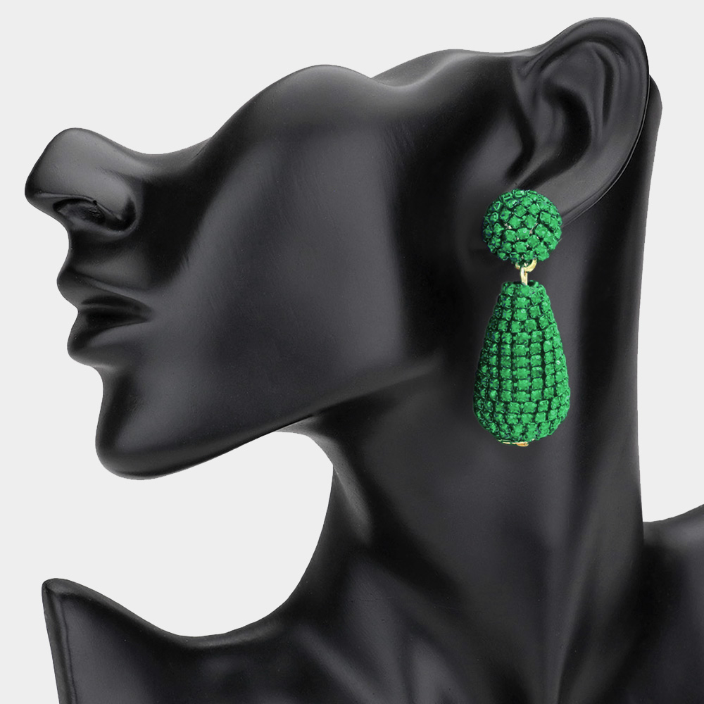 Flower Teardrop Stone Cluster Dangle Evening Earrings