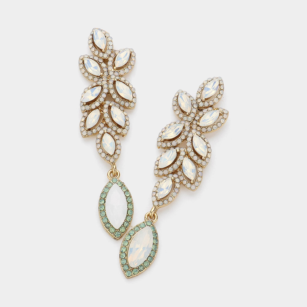 Rhinestone Trim Marquise Stone Cluster Vine Evening Earrings