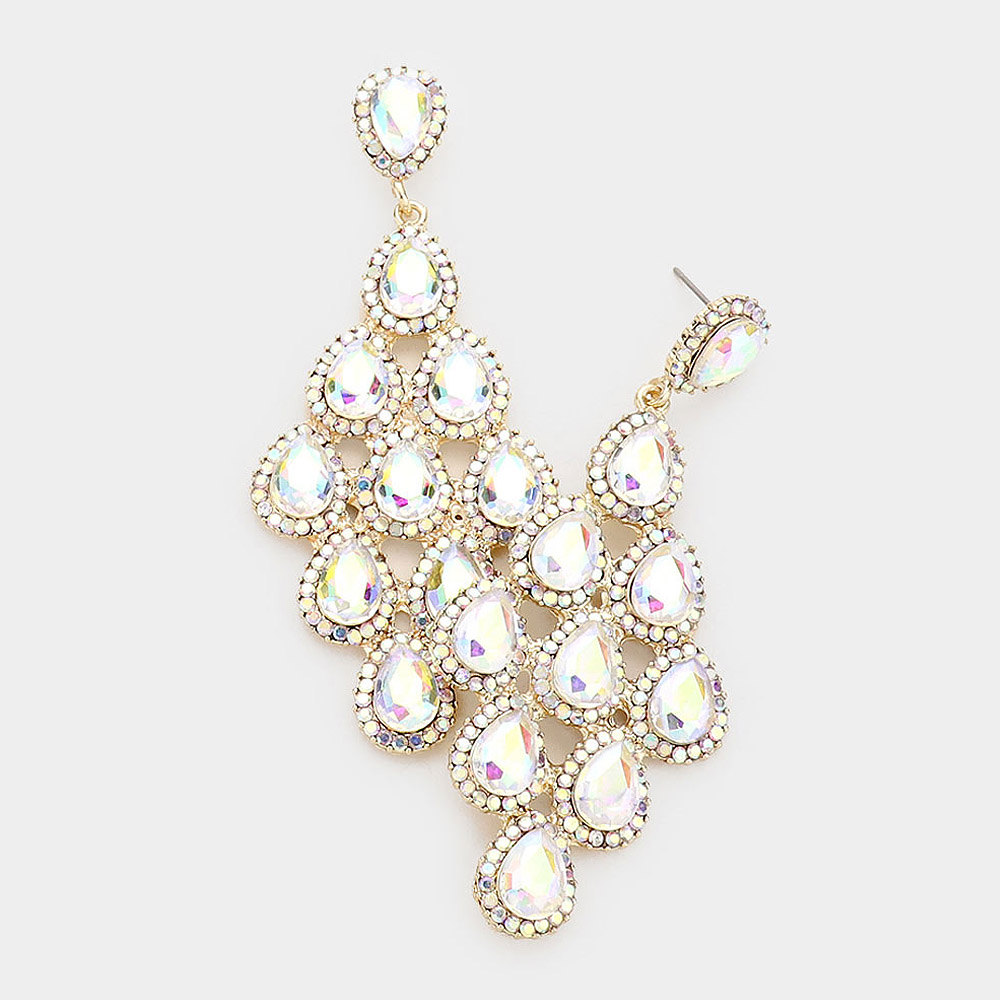 Rhinestone Trim Teardrop Cluster Vine Evening Earrings