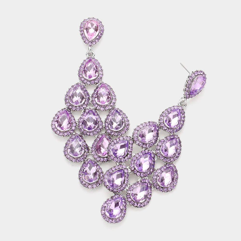 Rhinestone Trim Teardrop Cluster Vine Evening Earrings