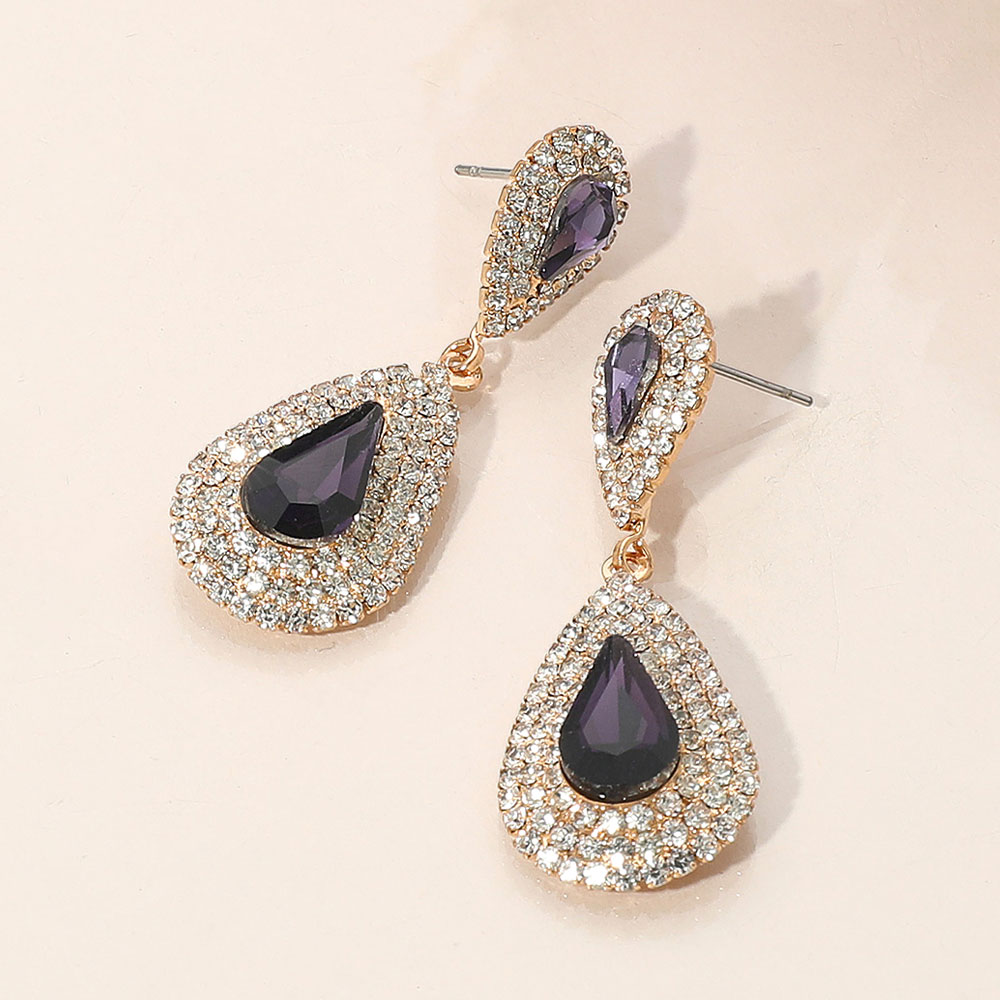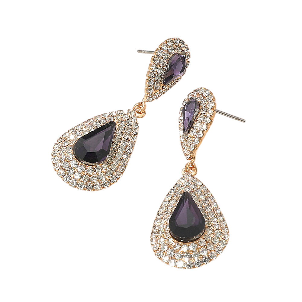Rhinestone Trim Teardrop Stone Accented Evening Earrings Rhinestone Trim Teardrop Stone Accented Evening Earrings