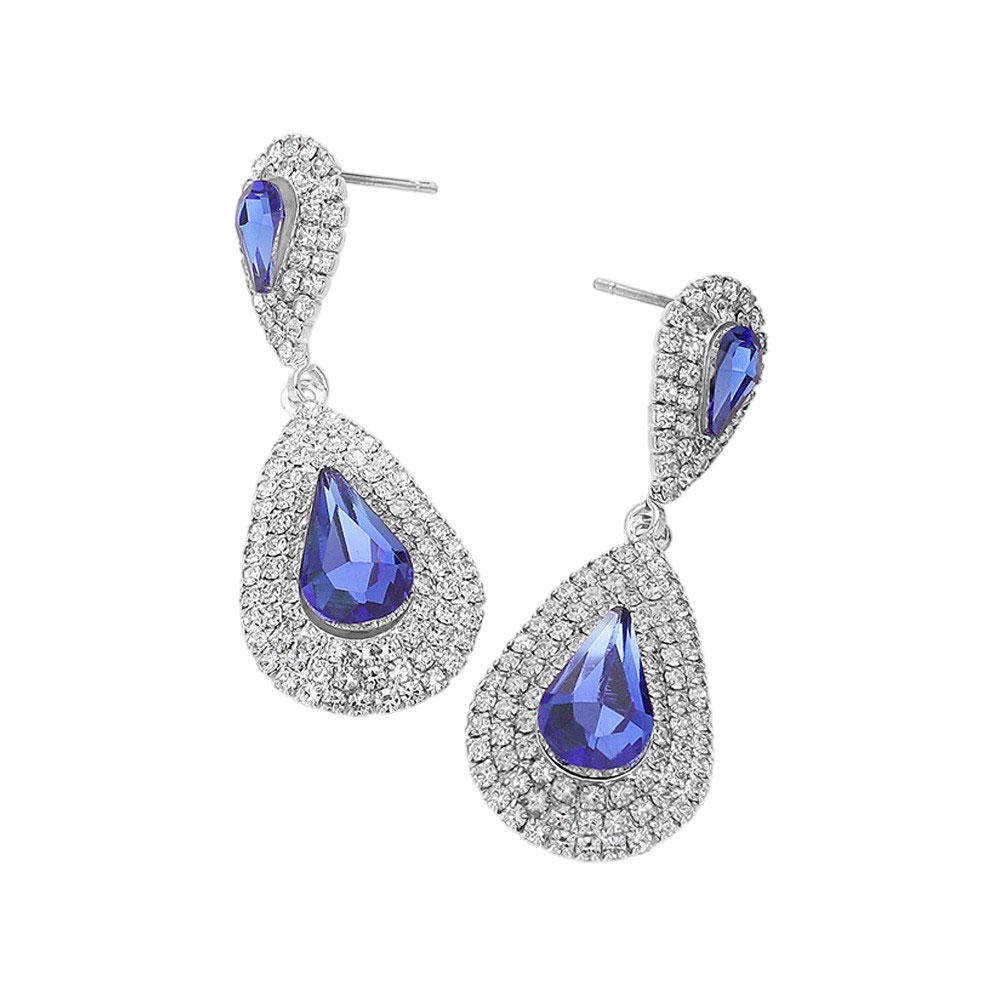 Details • Size : 0.6" X 1.75" • Post Back • Dazzling teardrop dangle earrings with a layered outline of shimmering stones and a brilliant center accent. Ideal for special occasions, adding sophisticated flair and sparkle to any elegant outfit.