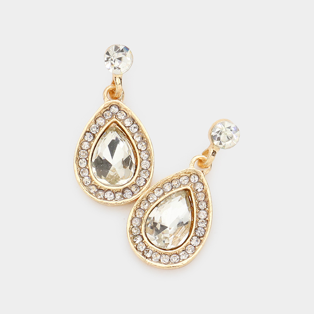 Rhinestone Trim Teardrop Stone Dangle Evening Earrings