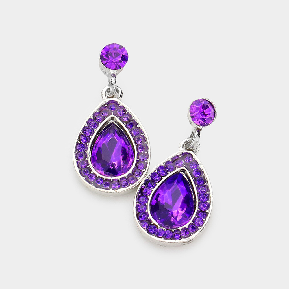 Rhinestone Trim Teardrop Stone Dangle Evening Earrings