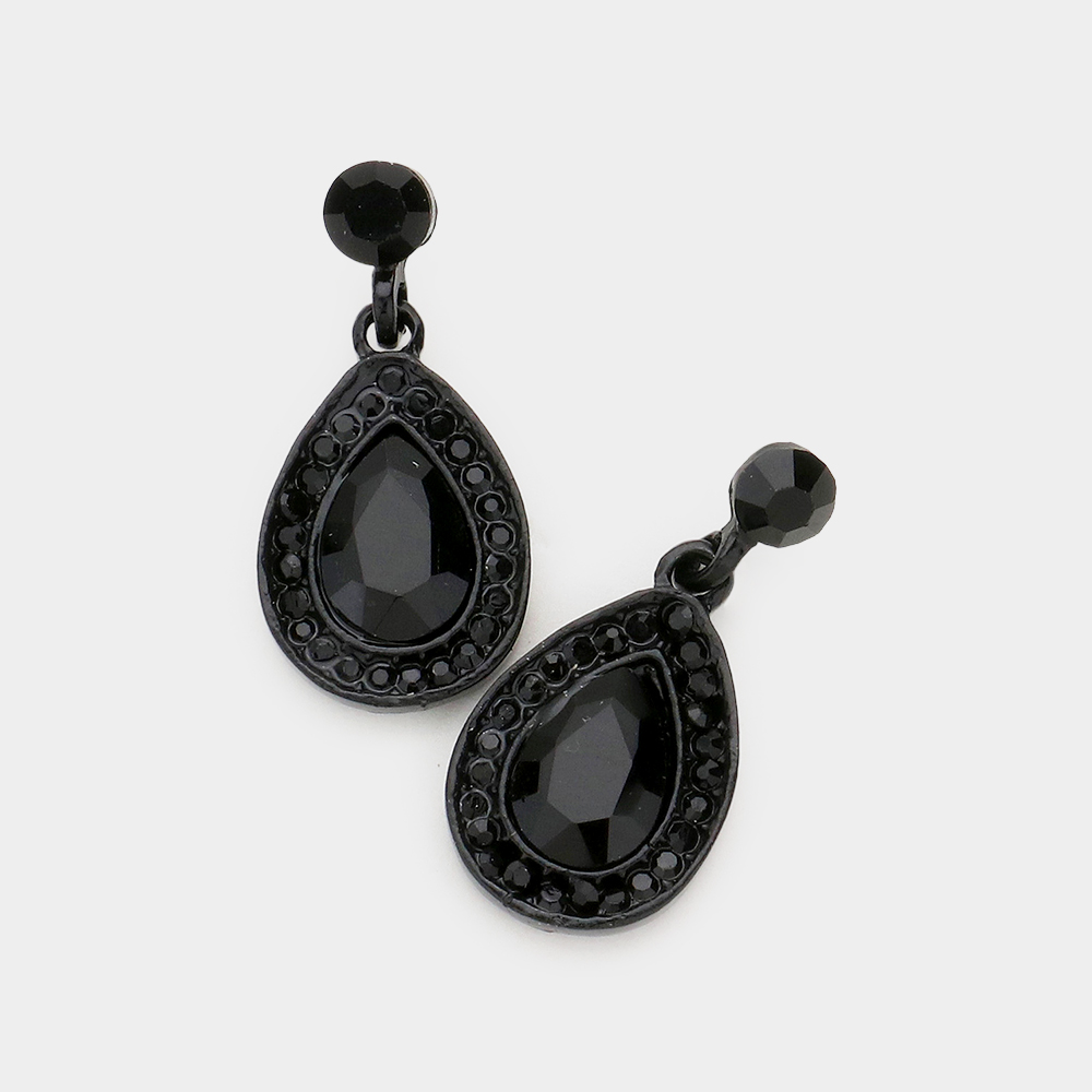 Rhinestone Trim Teardrop Stone Dangle Evening Earrings
