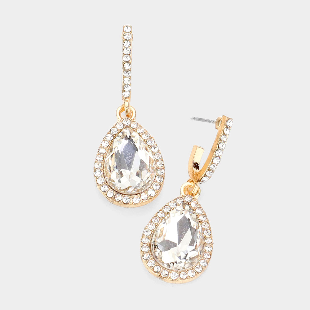 Rhinestone Trimmed Teardrop Stone Dangle Evening Earrings