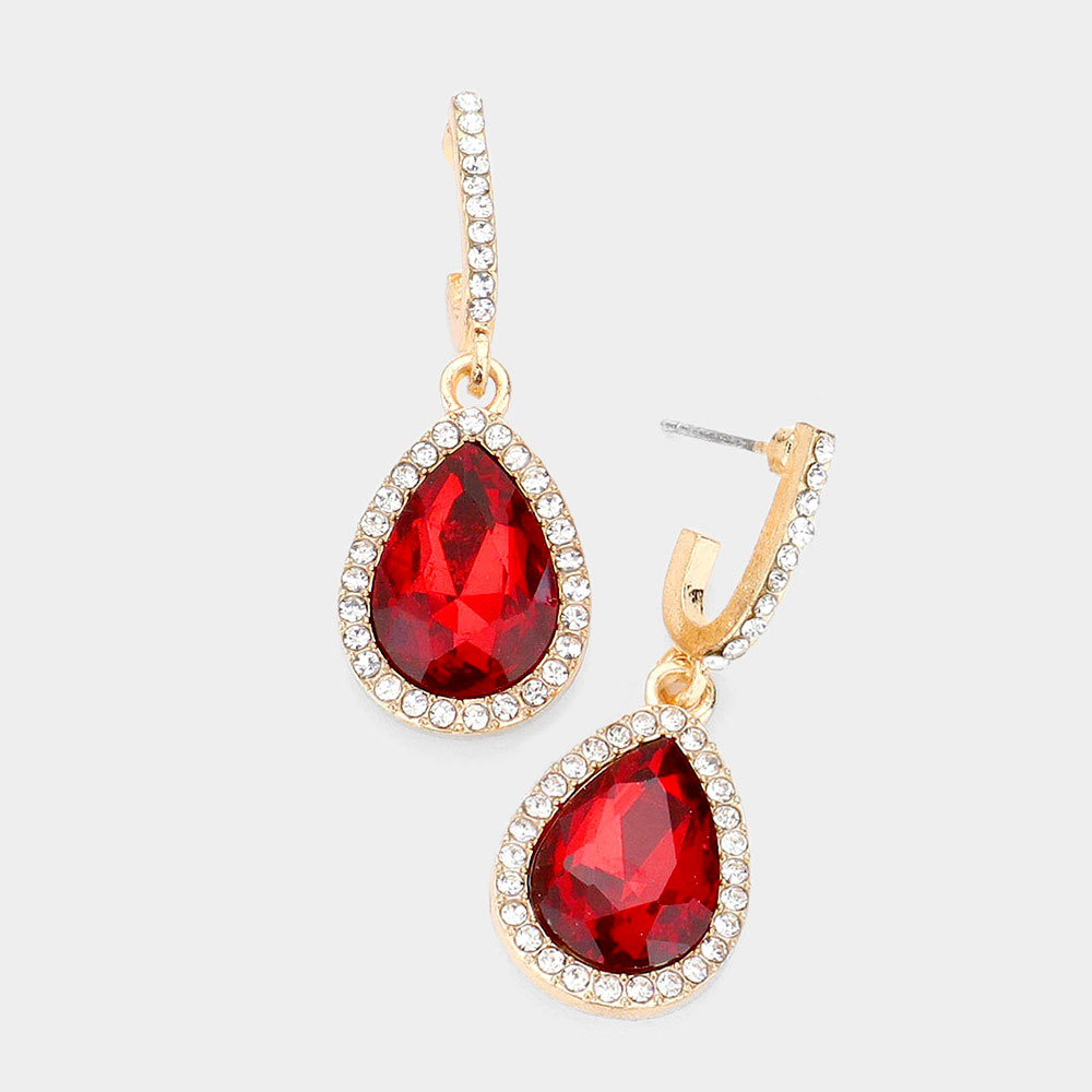 Rhinestone Trimmed Teardrop Stone Dangle Evening Earrings