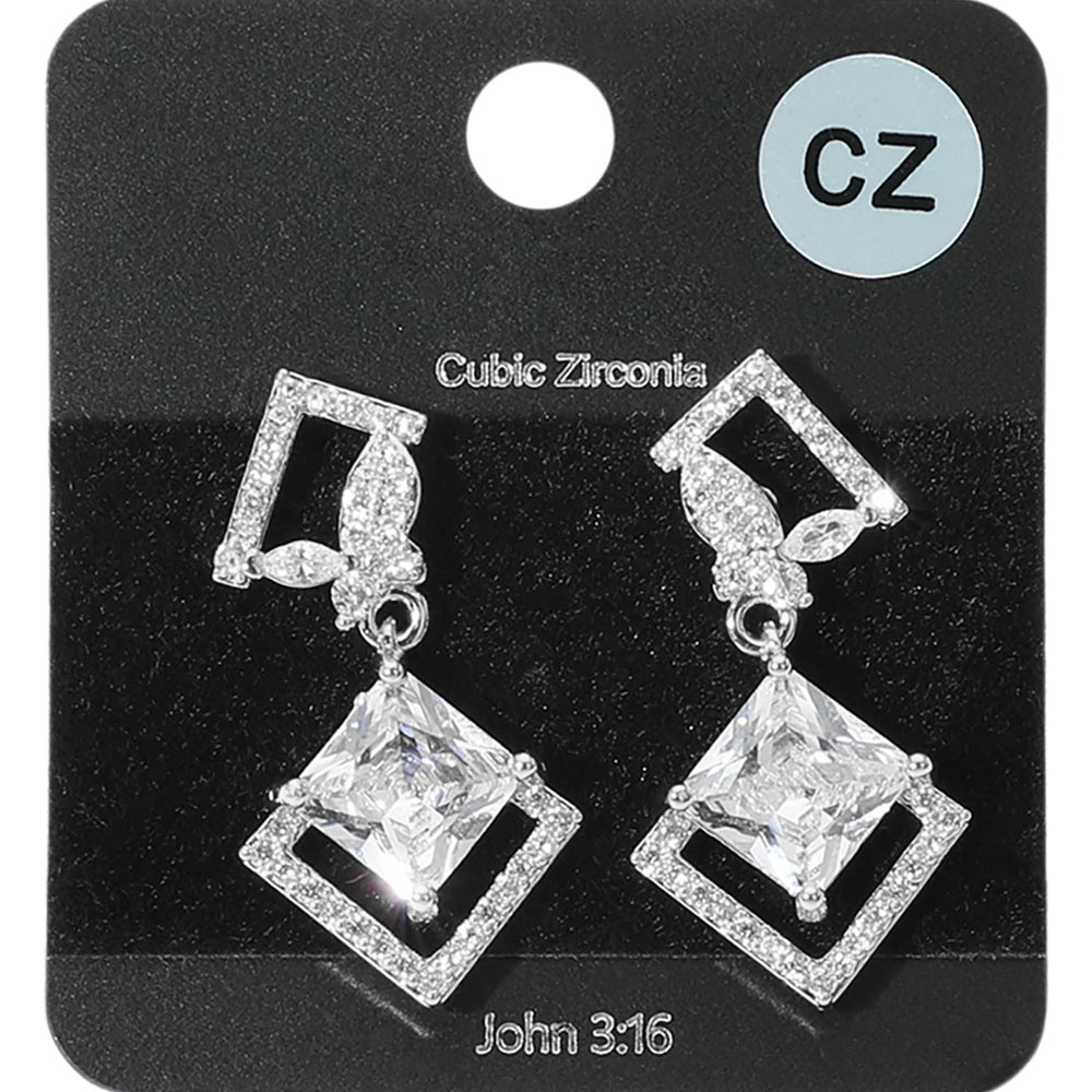 Rhombus CZ Stone Cluster Dangle Butterfly Pointed Evening Earrings