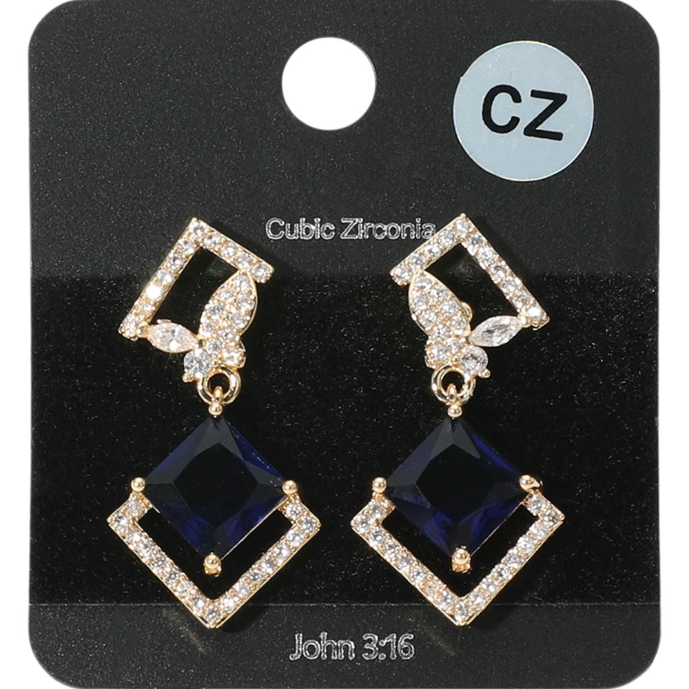 Rhombus CZ Stone Cluster Dangle Butterfly Pointed Evening Earrings