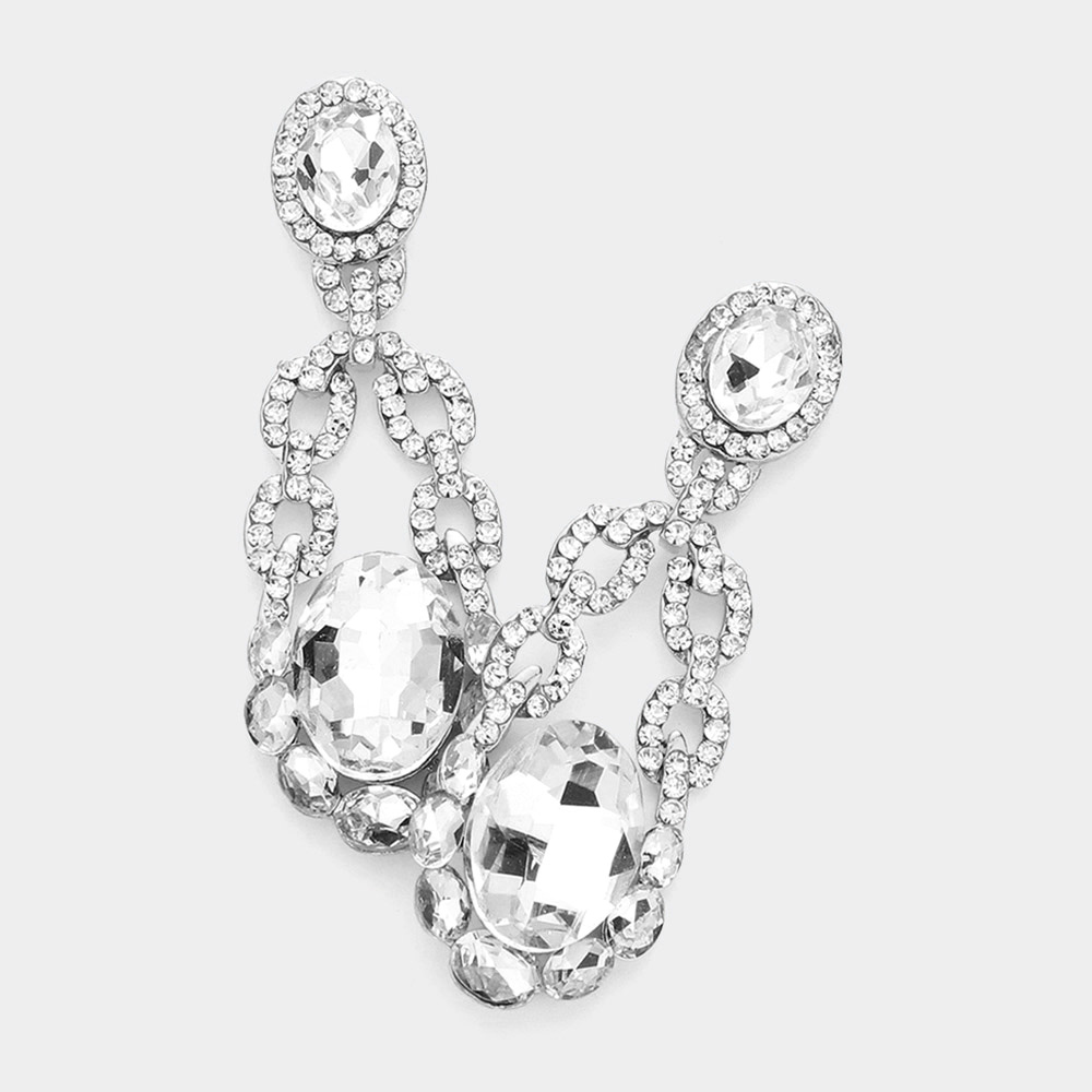 Flower Teardrop Stone Embellished Chandelier Dangle Earrings