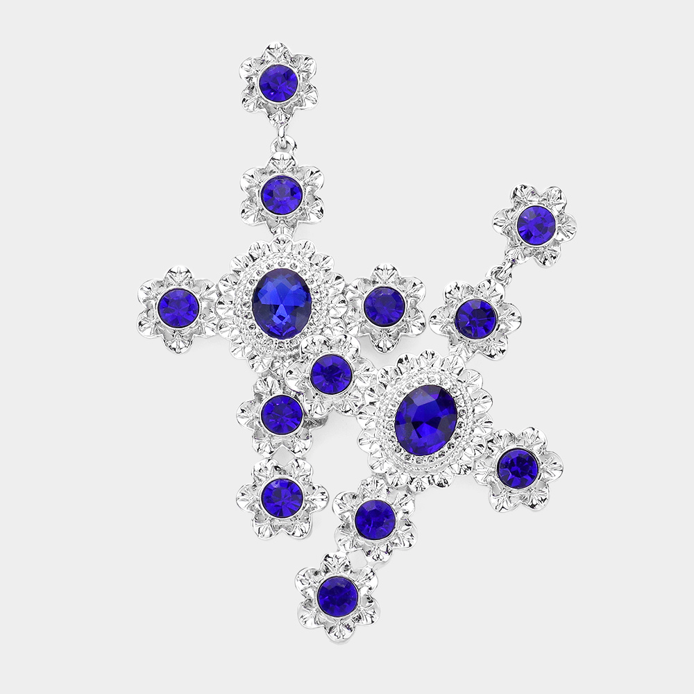 Round Oval Stone Accented Cross Dangle Evening Earrings