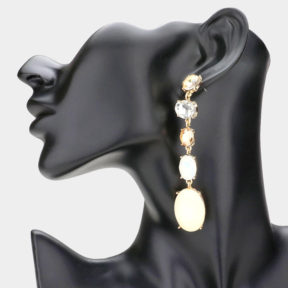 Floral Stone Teardrop Cluster Drop Evening Earrings