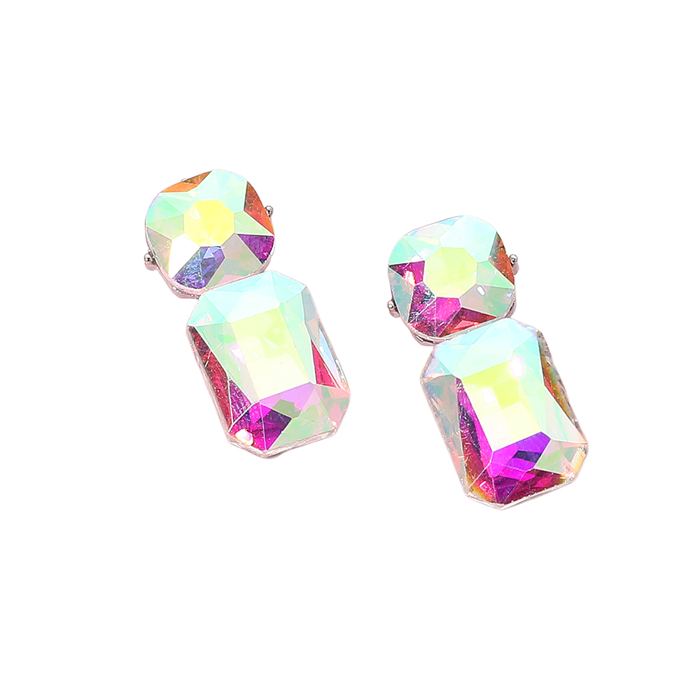 Teardrop Stone Accented Stone Paved Teardrop Dangle Earrings
