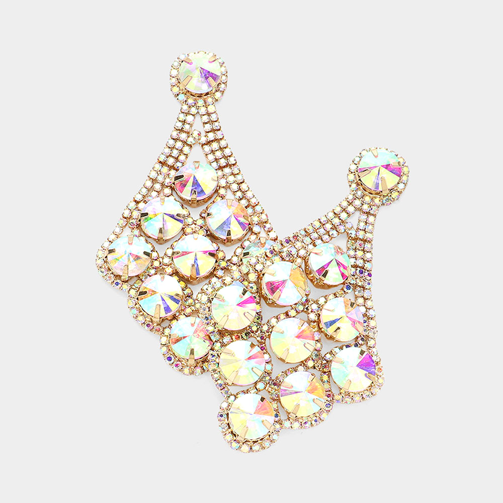 Round Rectangle Stone Cluster Evening Earrings