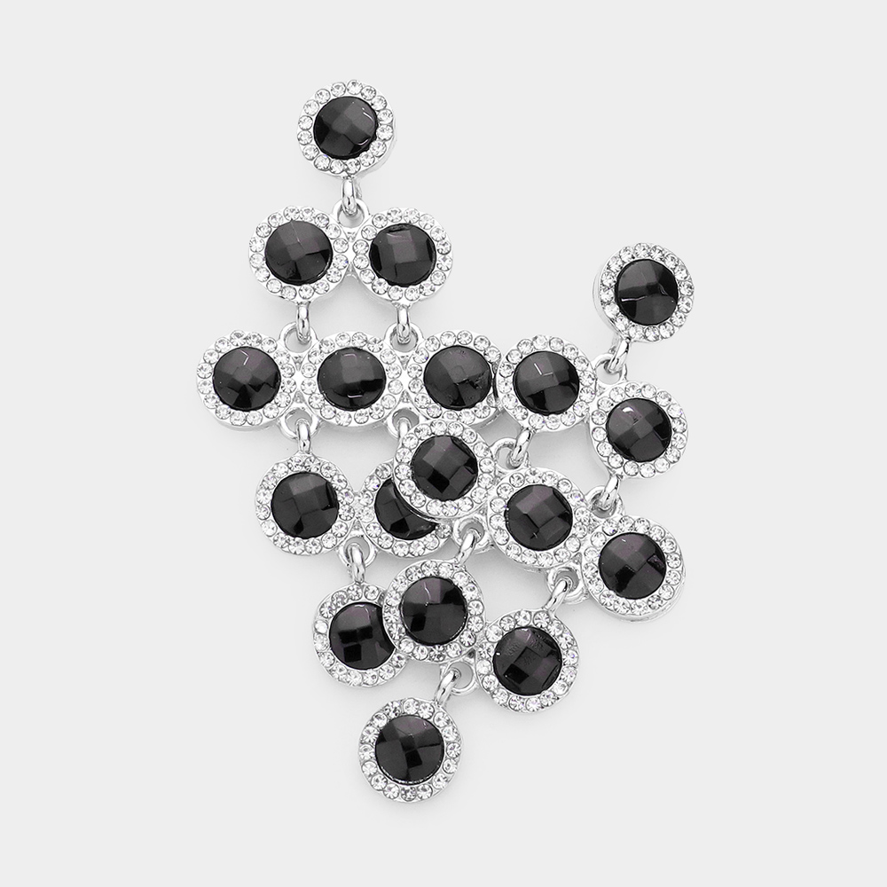 Round Stone Cluster Vine Dangle Evening Earrings