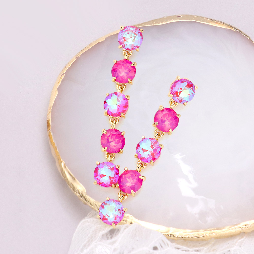Double Marquise Stone Teardrop Link Dangle Evening Earrings