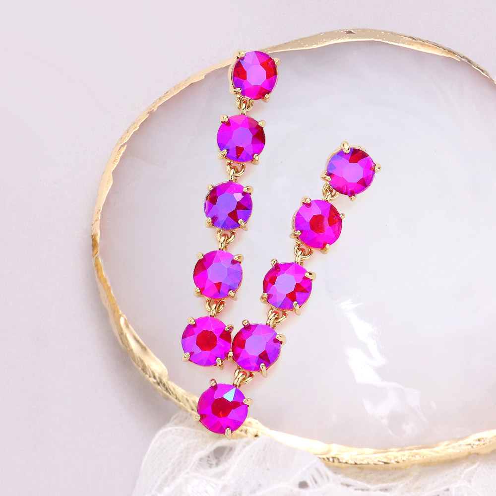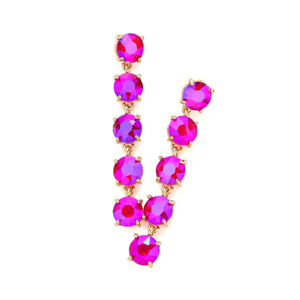 Round Stone Link Dangle Evening Earrings