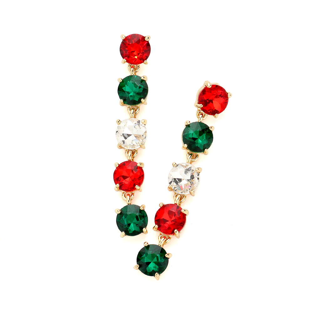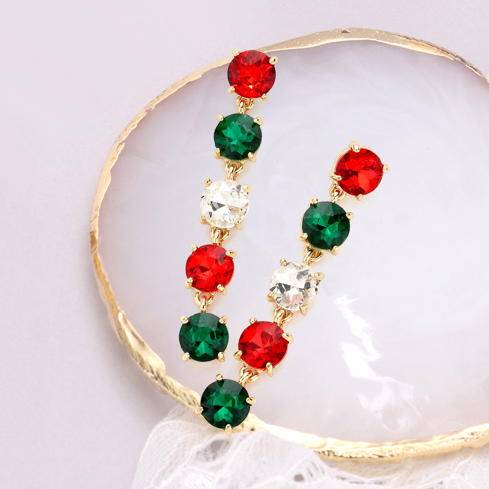 Cushion Square Stone Glitter Santa Claus Dangle Earrings