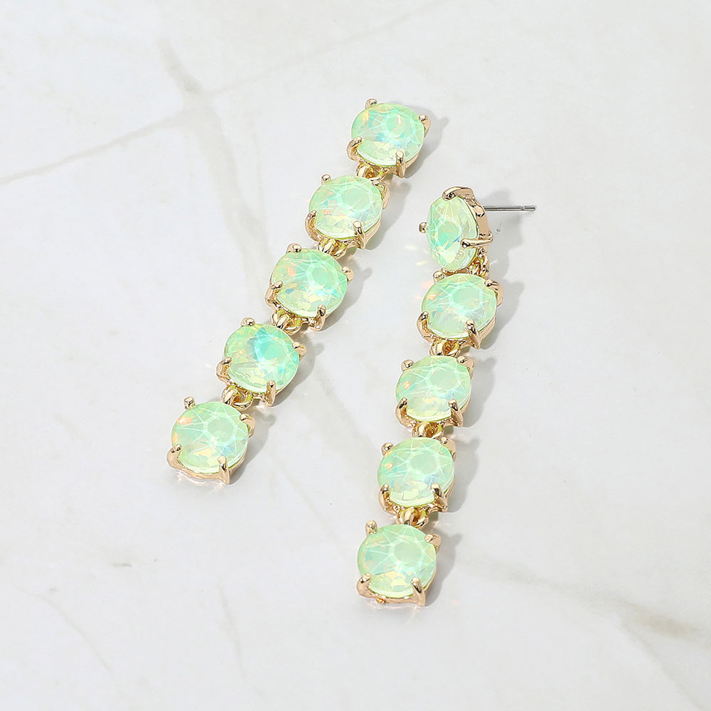 Round Stone Link Dangle Evening Earrings