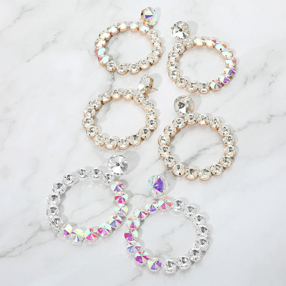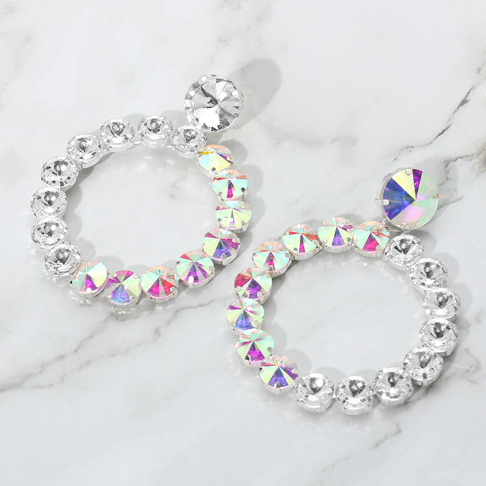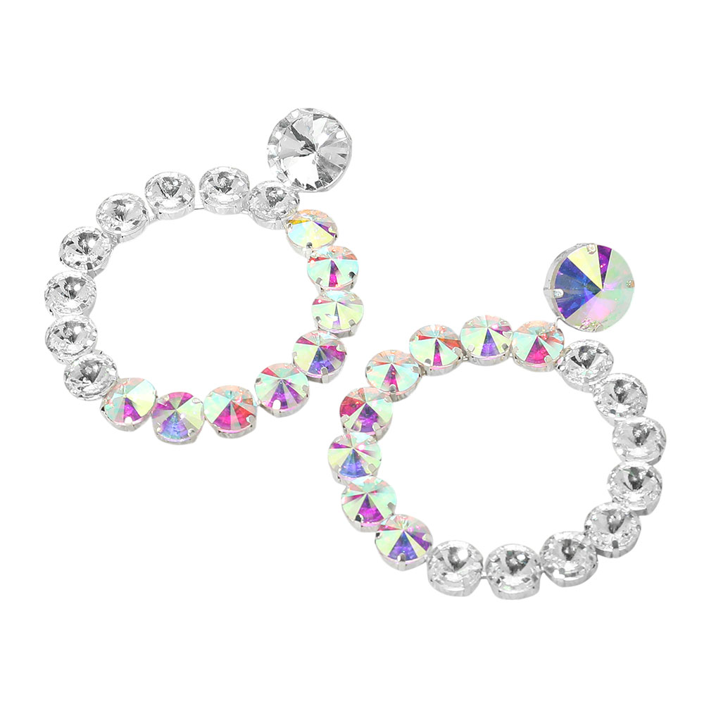 • Elegant round earrings featuring sparkling clear crystals and iridescent accents. Perfect for party wear, evening glamour, or gifting a touch of brilliance.