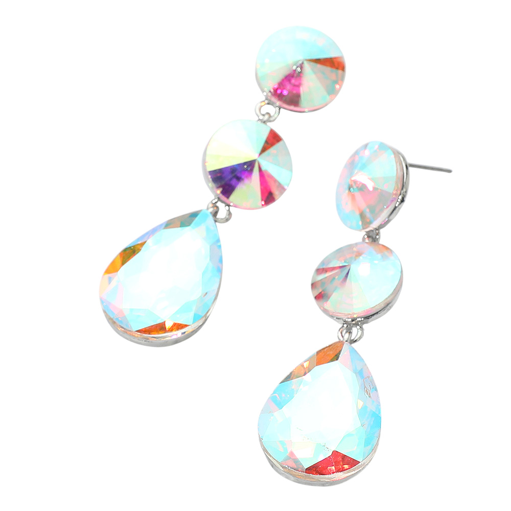 • Bold teardrop dangle earrings with faceted stones and round stud accents. Designed for a striking, glamorous touch, these earrings are ideal for evening events, weddings, or adding sparkle to any special occasion.