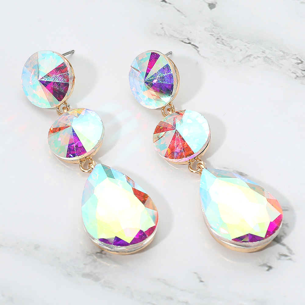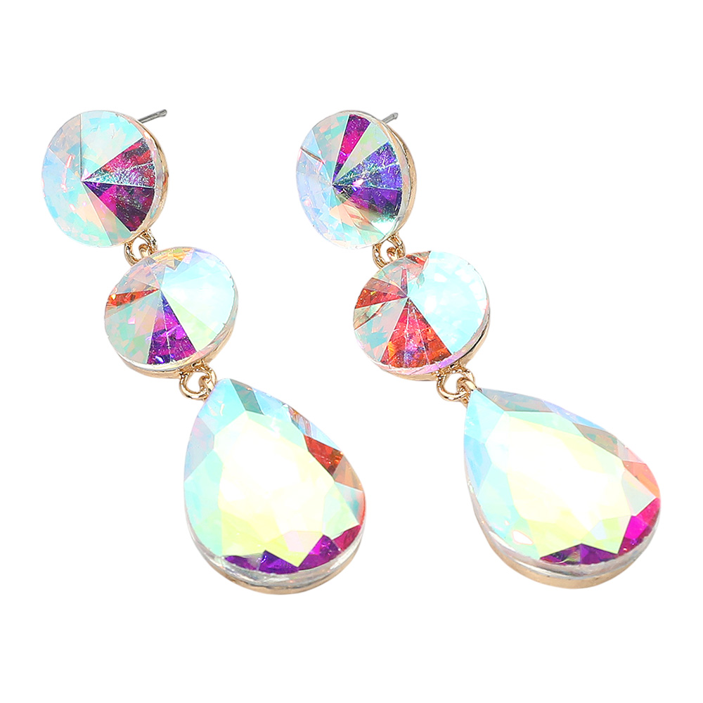 • Bold teardrop dangle earrings with faceted stones and round stud accents. Designed for a striking, glamorous touch, these earrings are ideal for evening events, weddings, or adding sparkle to any special occasion.