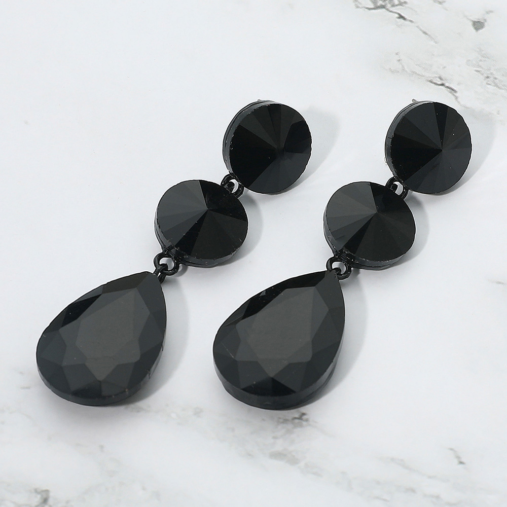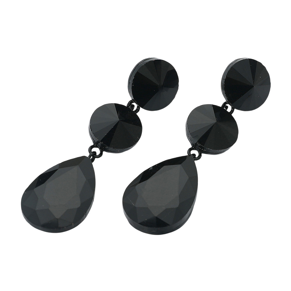 • Bold teardrop dangle earrings with faceted stones and round stud accents. Designed for a striking, glamorous touch, these earrings are ideal for evening events, weddings, or adding sparkle to any special occasion.
