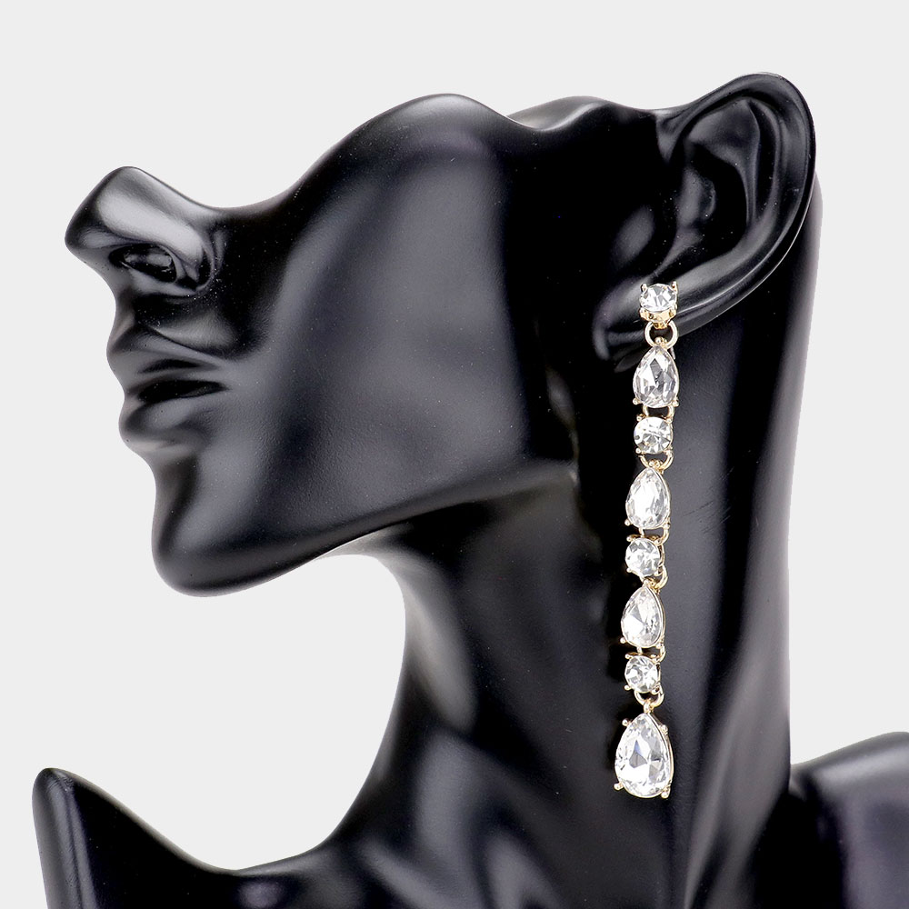 3Pairs - Gold Dipped Graduated Size Square Crystal Stud Earring Set