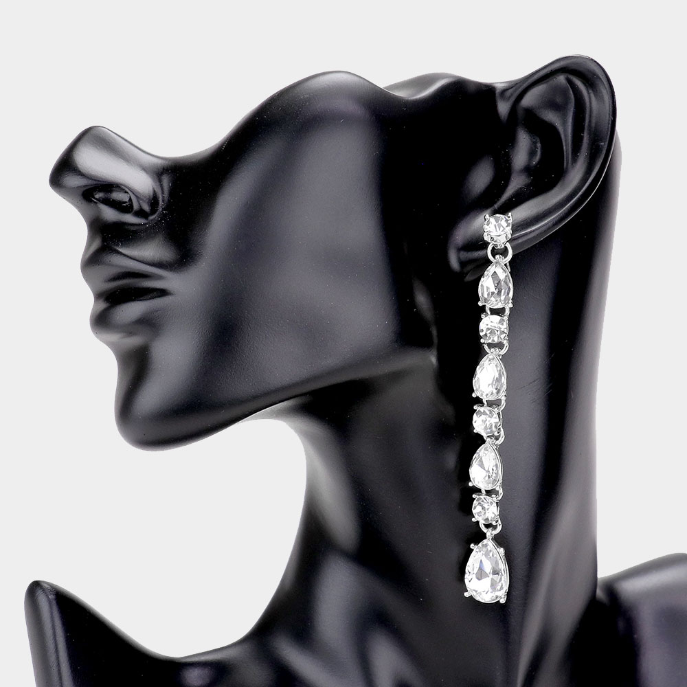 Oblique Lined Rhinestone Embellished Curved Enamel Earrings