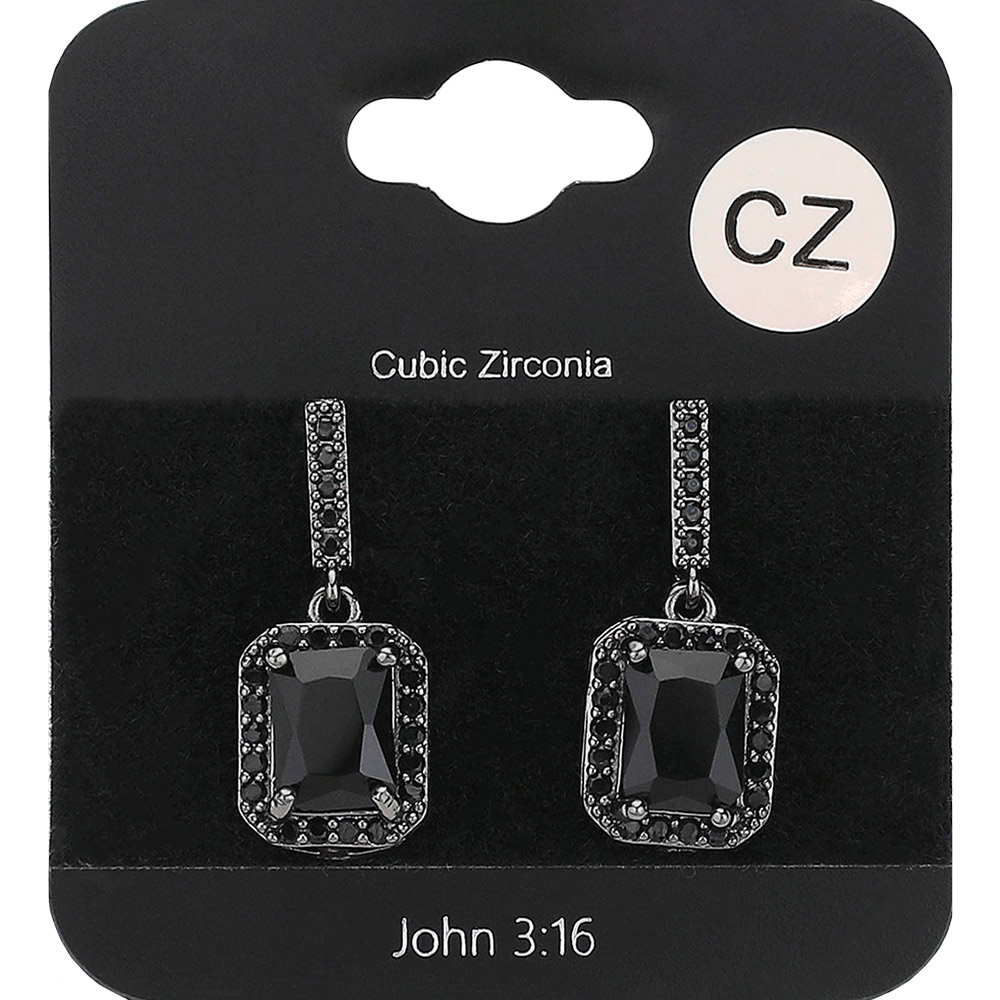Details • Size : 0.4" X 0.9" • Post Back • Elegant drop earrings featuring rectangular-cut stones framed in a halo of smaller accents. A timeless accessory that adds brilliance and sophistication to any outfit. Perfect for formal occasions, weddings, or everyday sparkle with refined charm. • CZ Cubic Zirconia