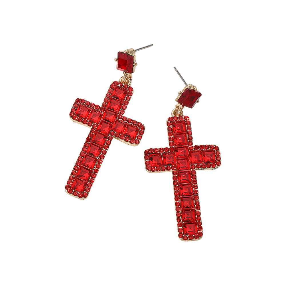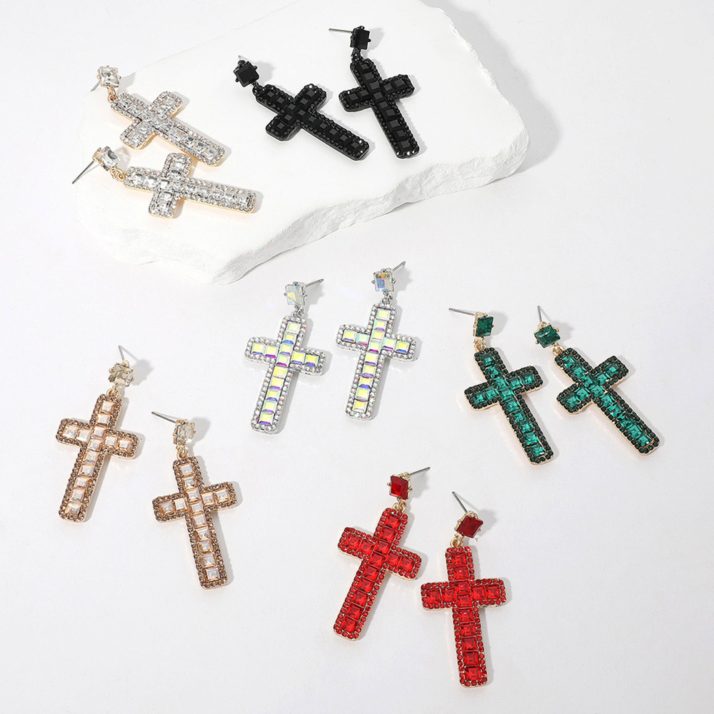 Abalone Embossed Antique Metal Cross Dangle Earrings