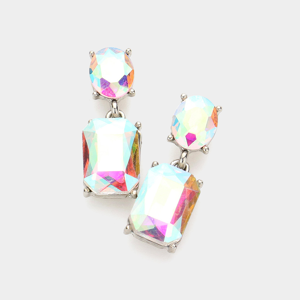 Square Stone Cluster Dangle Evening Earrings