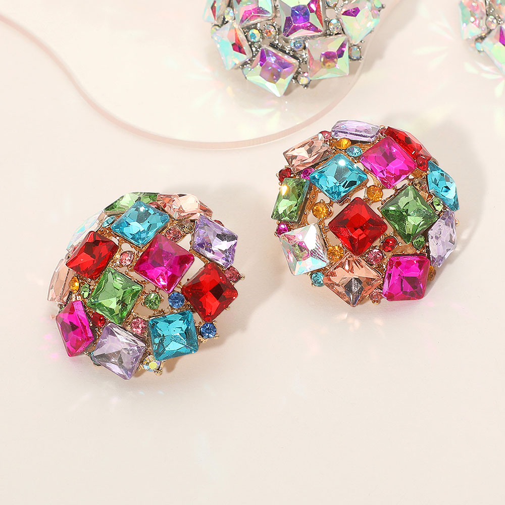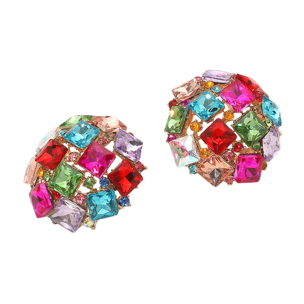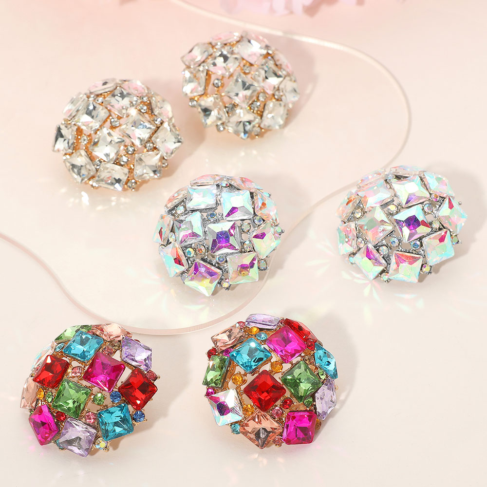 Details • Size : 1.5" X 1.5" • Post Back • Eye-catching rhinestone dome stud earrings with multi-faceted sparkle. Perfect for statement looks, parties, or adding glam to any outfit. Lightweight and comfortable to wear all day. • Lead and Nickel Compliant