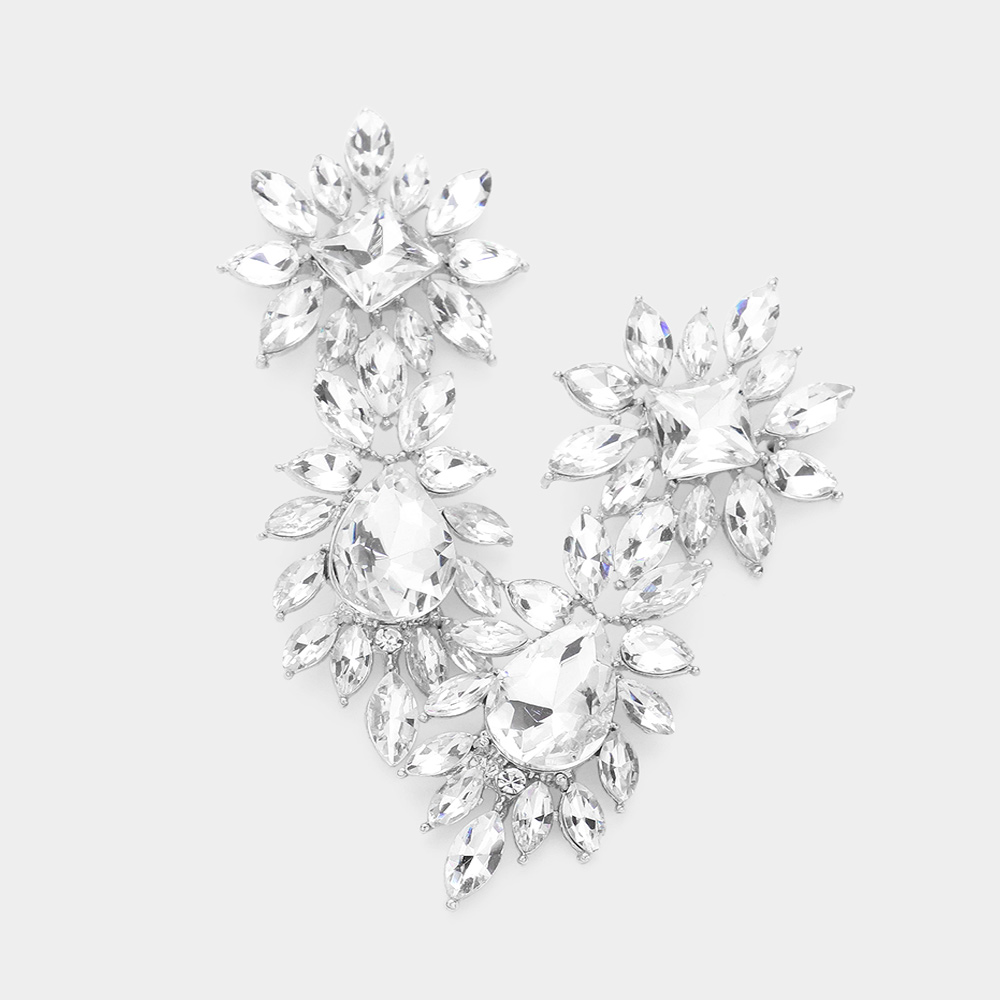 Square Teardrop Accented Marquise Stone Cluster Evening Earrings