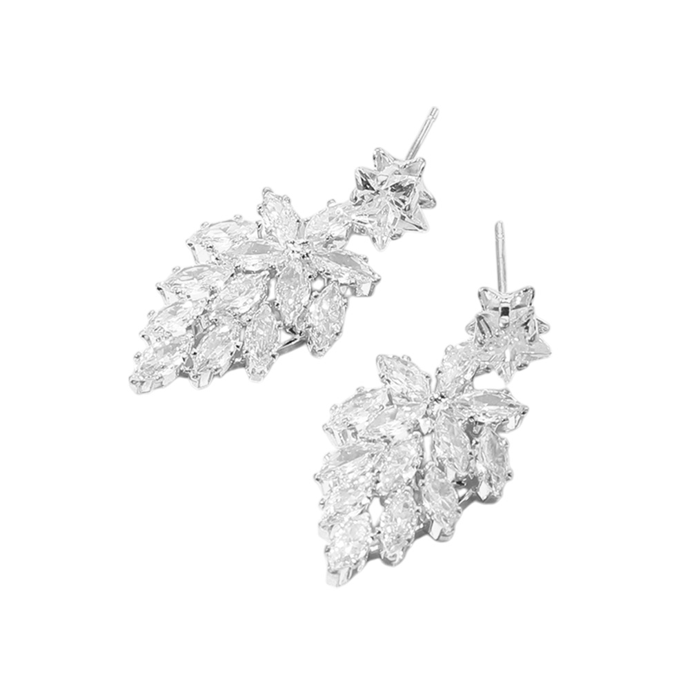 Star CZ Stone Pointed Marquise Stone Cluster Dangle Evening Earrings