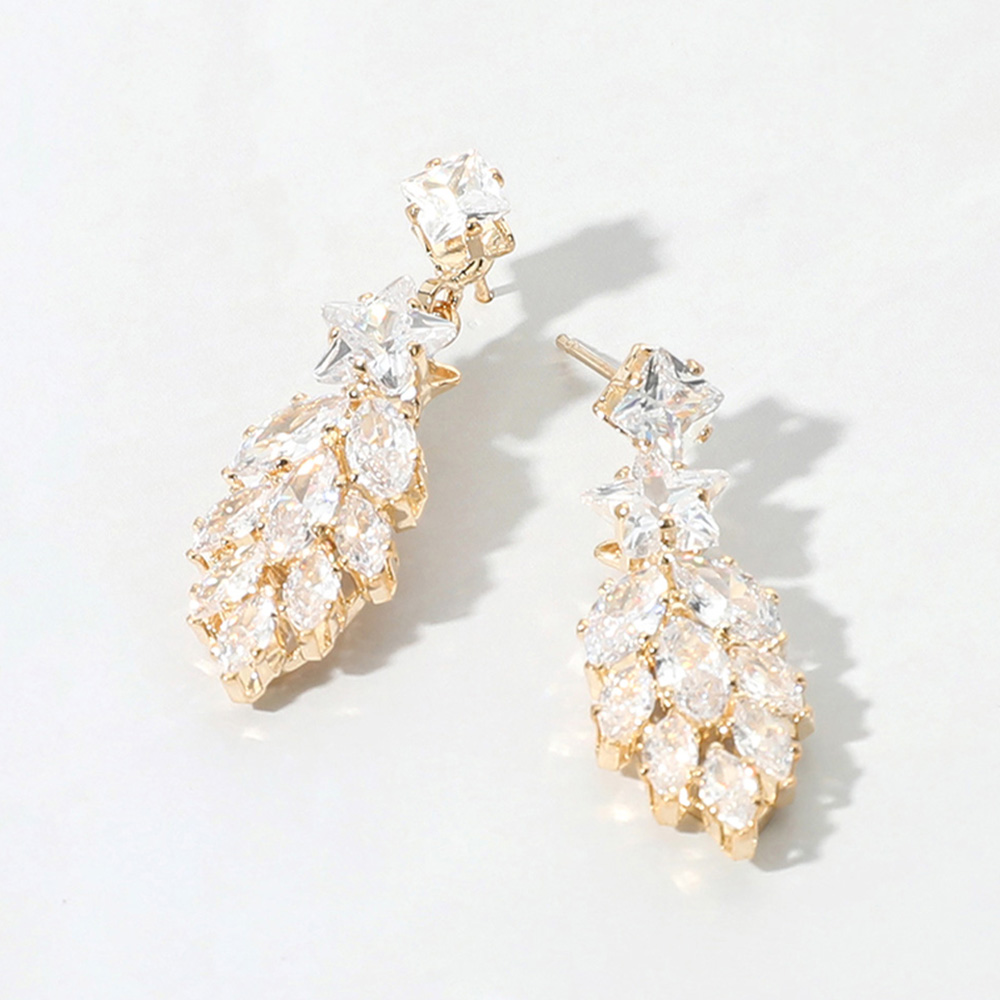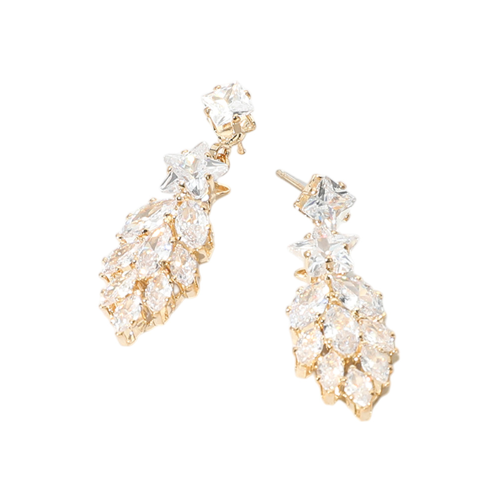 Star Marquise CZ Stone Cluster Dangle Evening Earrings