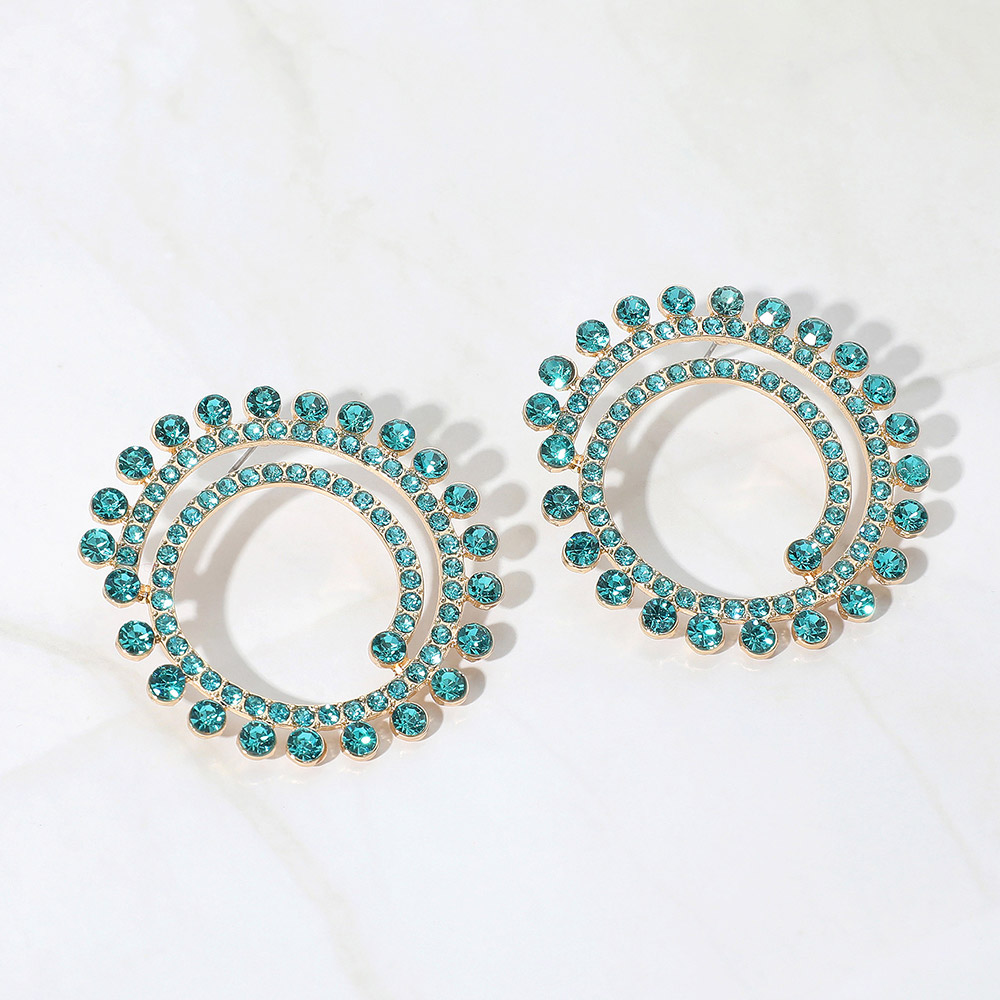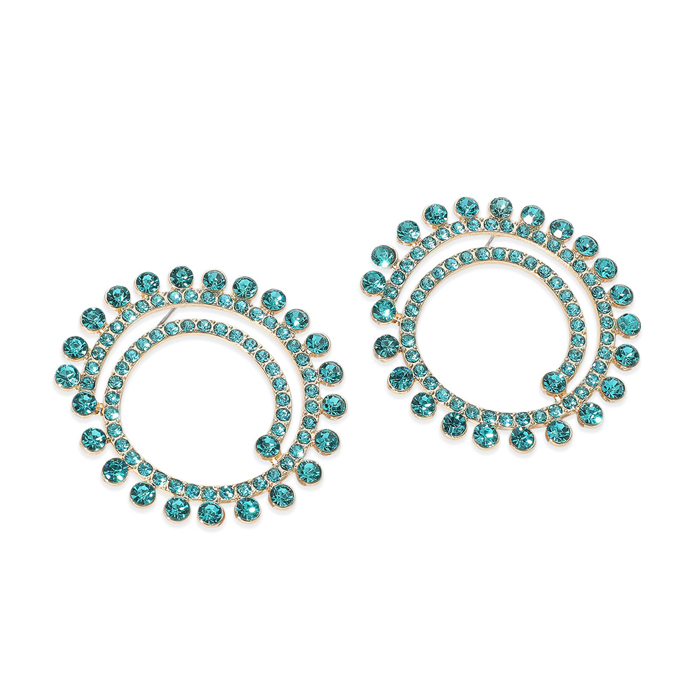 • Elevate your look with these dazzling crystal spiral earrings in a radiant gold-tone finish. Featuring a bold open-circle design with sparkling rhinestones, they are perfect for weddings, parties, and glamorous night-outs. Lightweight yet eye-catching for all-day wear.