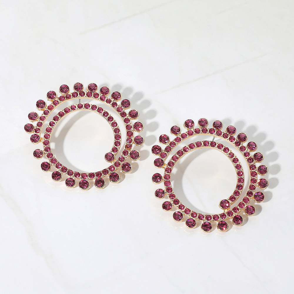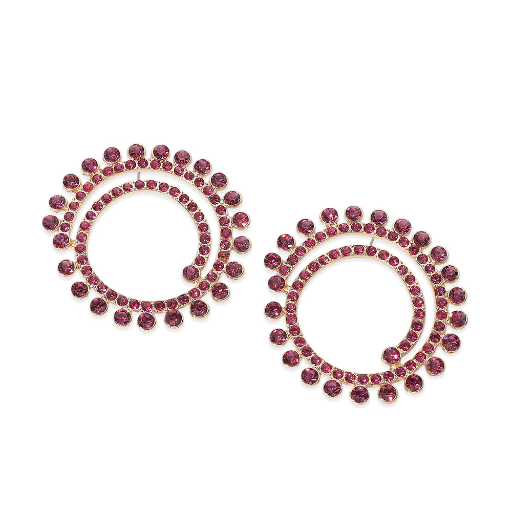 • Elevate your look with these dazzling crystal spiral earrings in a radiant gold-tone finish. Featuring a bold open-circle design with sparkling rhinestones, they are perfect for weddings, parties, and glamorous night-outs. Lightweight yet eye-catching for all-day wear.