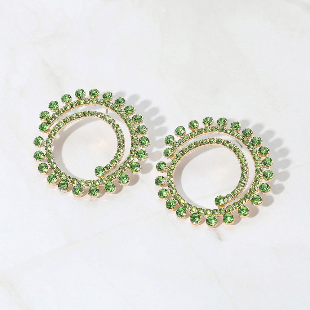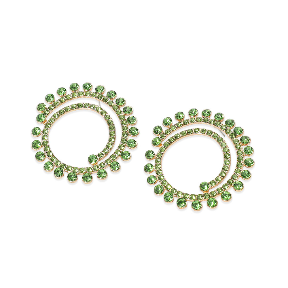 • Elevate your look with these dazzling crystal spiral earrings in a radiant gold-tone finish. Featuring a bold open-circle design with sparkling rhinestones, they are perfect for weddings, parties, and glamorous night-outs. Lightweight yet eye-catching for all-day wear.