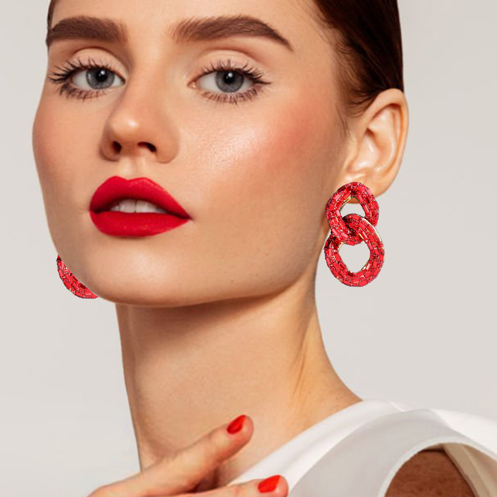 Crystal Rhinestone Trim Flower Evening Drop Earrings